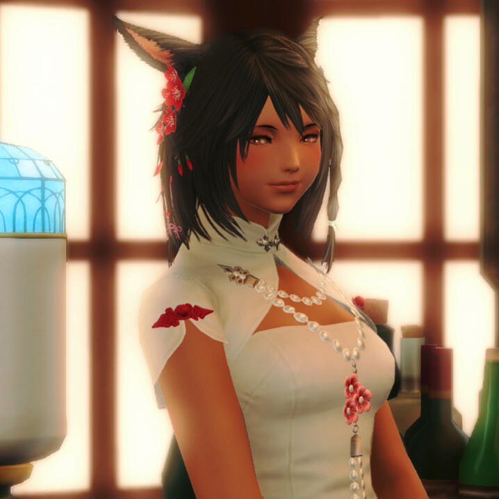 Established by the proprietress, Rihua Hong, as a luxury bar and lounge with a focus on featuring Far Eastern cuisine and interior decor.Descending from a long line of Nagxian geomancers and a clan of peerless seafarers from the Glass Ocean, the Lady of the House was educated in Thavnair where she took up the culinary arts before sailing westward to Eorzean shores.Although Limsa Lominsa has served as her home on Vylbrand for some time, the Jade Window was opened in the city state of Gridania to not only be closest to nature, but to also serve as a safehaven free of discrimination where the flavors of the Near and Far East may be experienced by all.Thanks to the Jade Window's rousing success, Mistress Hong acquired a plot with a view in the Lavender Beds, where now stands the Persimmon Leaf--a café where she aims to provide patrons with the same quality service, cuisine, and soothing atmosphere to escape the fast-moving day-to-day of every Eorzean.