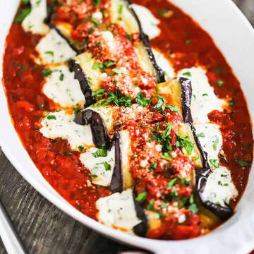 Rich, dark eggplants roasted to tender perfection, coupled with chopped giant popotoes and succulent blood tomatoes. All coated with a healthy amount of melted Garlean cheese,